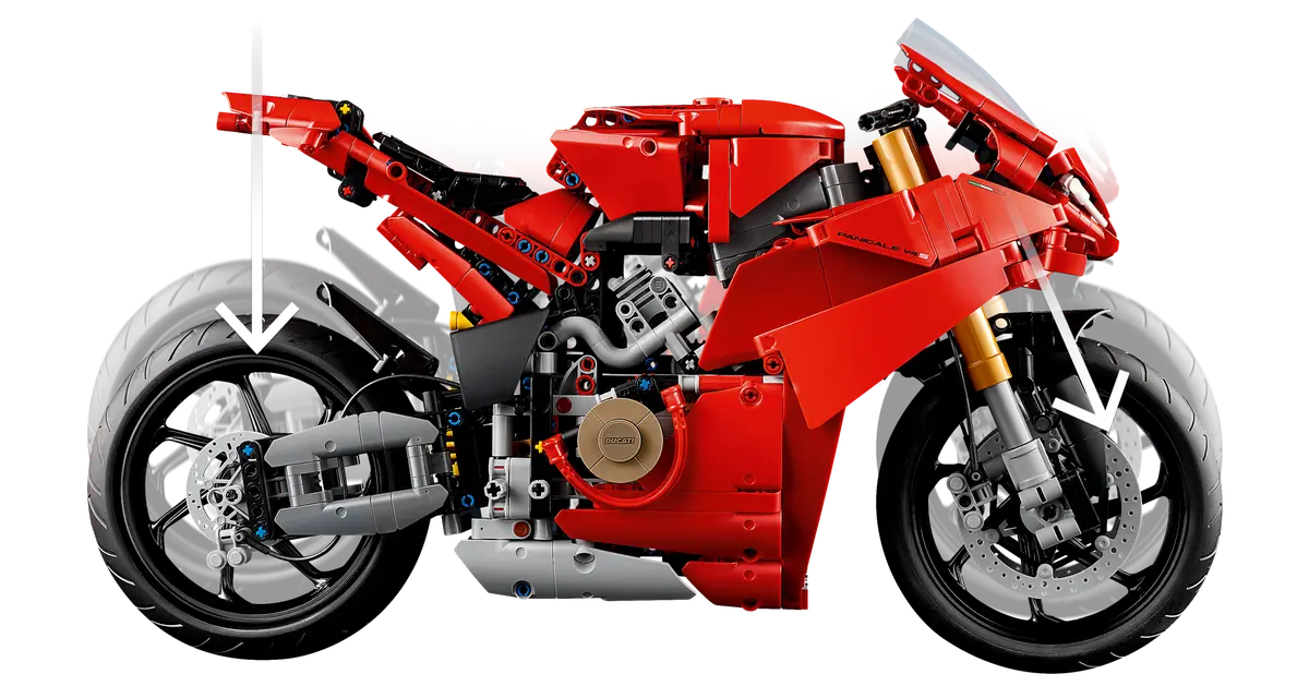 🟣 Ducati Panigale V4 R – 42107Recreate the iconic Ducati Panigale V4 R with this LEGO Technic set. As the first motorcycle model in LEGO Technic history to include a gearbox, it offers a 2-speed transmission, front and rear suspension, and front and rear disc brakes. This 646-piece set is a must-have for motorcycle enthusiasts.